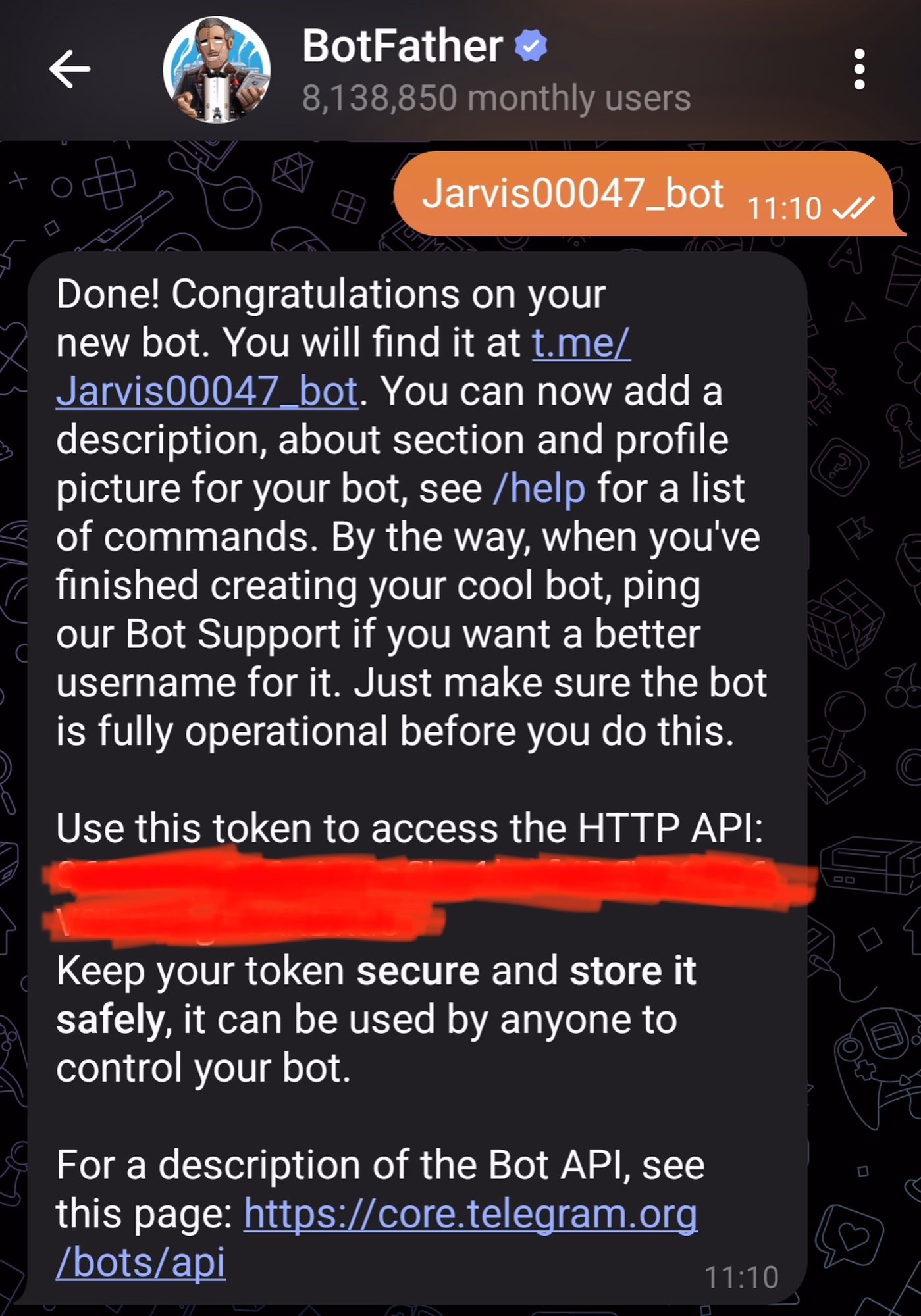 Save your Bot Token and Chat ID; you'll need them for the provisioning script in Step 7.